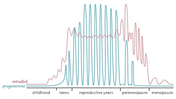 Periods there I’ve said it, it’s out there, what a pain they are anyway for women, every month for a week or so feeling like crap, your skin changes, you’re in pain due to cramps, you feel bloated, you can’t sleep or wear what you want, you have to know where the loos are, and have supplies with you and you might feel low or more angry than usual. Well during Perimenopause this gets worse for some. During Perimenopause, our key sex hormones start to decline, but this does not follow a linear pattern, instead it’s more like this…